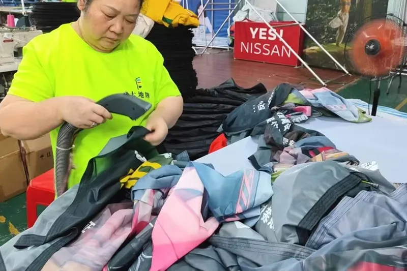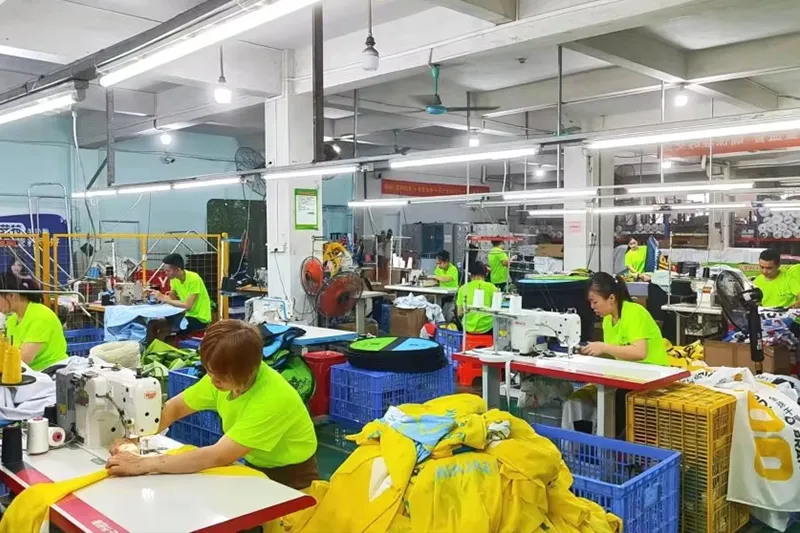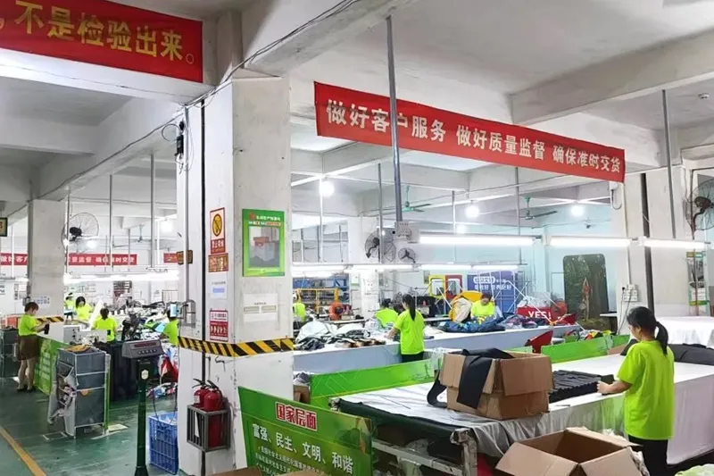 워크샵 10, 800 SQM, 130+ 직원, 20+ 디자이너 팀, $5,000,000 고정 자산 기계, 50+ 세트 금속 가공 기계, 100+ 세트 직물 및 인쇄 기계, 1000000+ 세트 연간 수출 수량, 90% 고객 중복 주문.